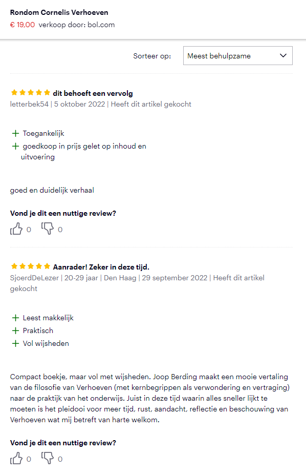 *De derde, een signalement, verscheen op 13 juli 2022 op de Vlaams/Nederlandse website “Hic et nunc” en valt hier te lezen: https://hic-nunc.nl/nl/artikels/joop-berding-rondom-cornelis-verhoeven. Bespreker Patrick De Rynck noemt “een sympathiek boekje”. Voorts noteert hij terecht: “Leraren stonden bij [Verhoeven] in hoog aanzien.”
