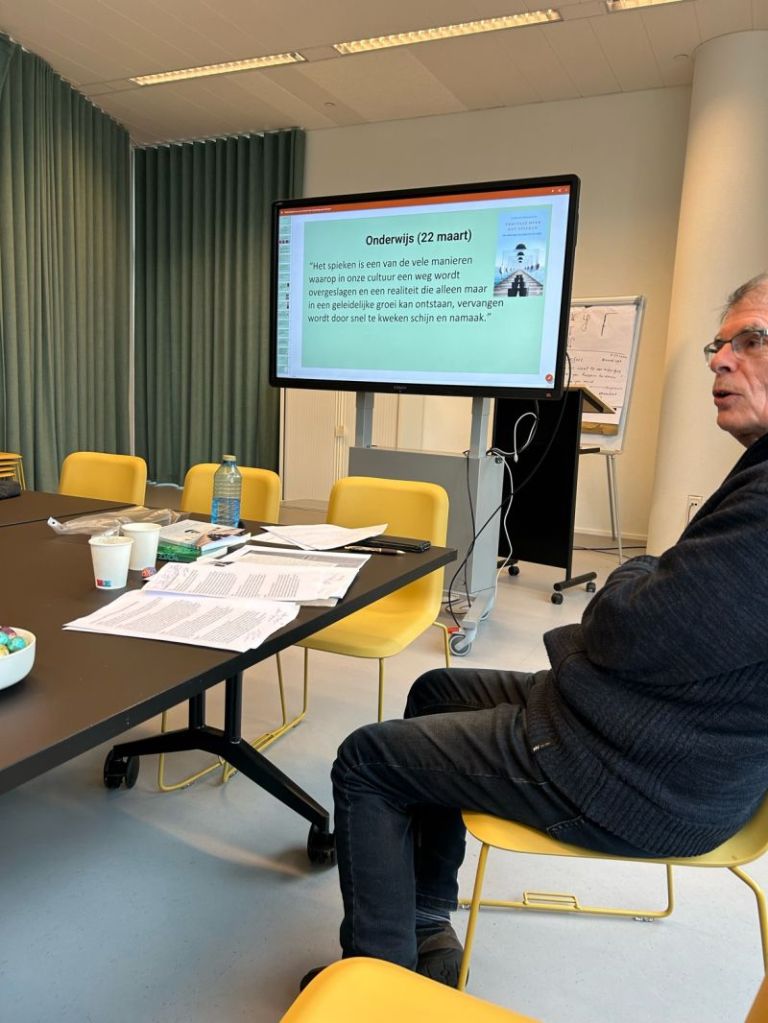 *Dr. Robert van Putten, lector Bezieling en professionaliteit aan de Christelijke Hogeschool Ede (CHE) begon in januari 2023 een leesclub voor docenten en startte met Rondom Cornelis Verhoeven! De groep van 12 formuleerde een aantal mooie, indringende en prikkelende vragen. Op 24 januari 2023 was ik te gast op de CHE om met de lezers in gesprek te gaan. Het werd een bijzonder fijn, open en betekenisvol gesprek. De vragen stimuleren mij om verder door te denken.