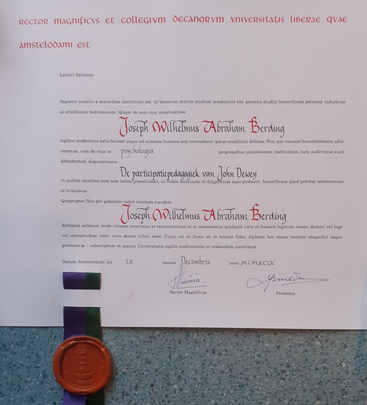 Op 9 december 1999 promoveerde ik aan de Vrije Universiteit in Amsterdam op het proefschrift De participatiepedagogiek van John Dewey. Opvoeding, ervaring en curriculum.