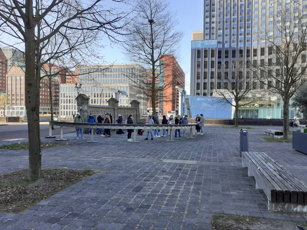 On April 1 we went to Rotterdam, where we first visited the memorial for the Jewish children in the Stieltjesstraat. Here was the “Umschlagplatz” for Rotterdam to Westerbork. A very impressive monument, dedicated to the nearly 700 children who were deported from Rotterdam, and were murdered in Auschwitz. The monument is part of a project for primary schools that can “adopt” one of the children, and investigate who he or she was, where they lived etc. Arie de Bruin, who is one of the initiators of the monument and project, told us about it.