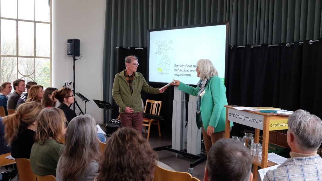 9 november 2024 was om meerdere redenen een bijzondere dag: in het Onderwijsmuseum in Dordrecht kwamen zo’n 90 mensen bij elkaar voor de jaarlijkse Korczak (donateurs) Dag. Na een inleiding door voorzitter Arie de Bruin werd het Jaarboek 2024 gepresenteerd: Een kind wil serieus genomen worden (uitgave van http://www.levendiguitgever.nl). Het is een bundeling verhalen over toen en nu, van oud-pupillen en -medewerkers in Korczaks weeshuis én van mensen die vandaag in zijn geest proberen te werken: in het onderwijs, in de kinderopvang, in de bso enz. Als grote verrassing (voor mij… :-)) kreeg ik uit handen van bestuurslid Barbara de Kort het eerste exemplaar uitgereikt!